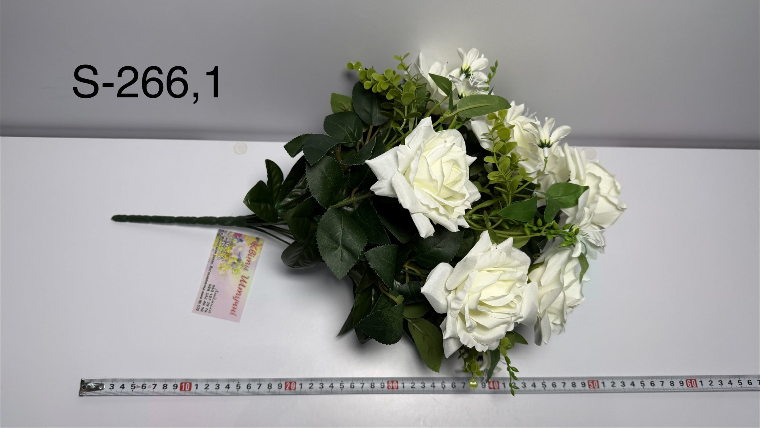 Завдяки реалістичному вигляду квітів букет виглядає охайно, елегантно та гармонійно у будь-якому просторі. Він складається з 15 гілок, які формують пишну та об’ємну композицію. Довжина букета становить 50 сантиметрів. Він представлений в одному забарвленні, що дозволяє легко поєднувати його з іншими декоративними елементами або використовувати як самостійний акцент у композиції. Товар продається виключно гуртовими партіями — по 10 букетів в одній коробці.